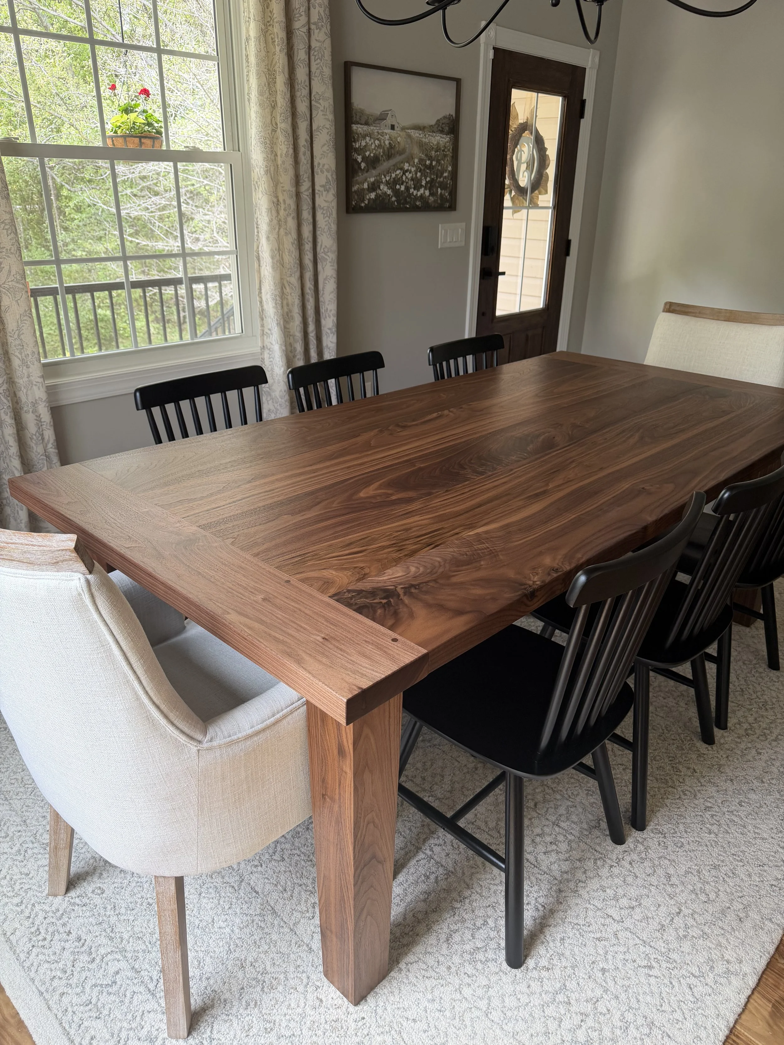 Hudson made a black walnut dining room table with 18" extensions. He was so knowledgeable and answered all our questions from beginning to end. He educated us on how to care for our special piece.